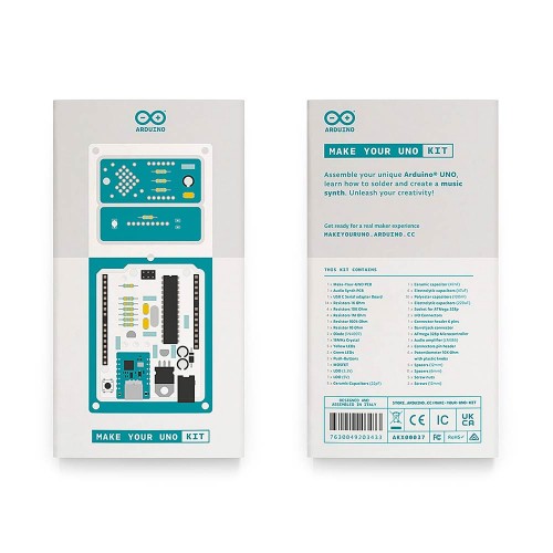 Aprende los conceptos básicos de la electrónica montando manualmente tu Arduino UNO, descubre y practica la soldadura ensamblando cada componente y luego libera tu creatividad con el único kit que se convierte en un sintetizador.